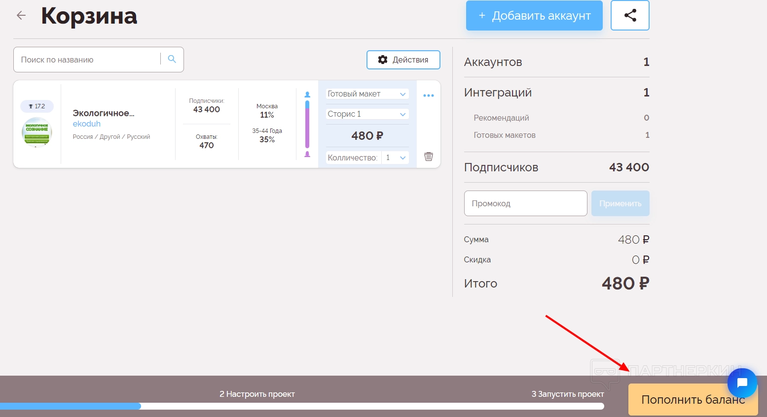 После нажатия на значок корзины выше отобразится финальная стоимость. Пользователю нужно еще раз кликнуть на корзину.