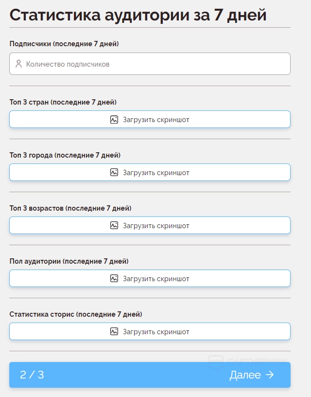 На второй странице исполнителю нужно заполнить раздел со статистикой: