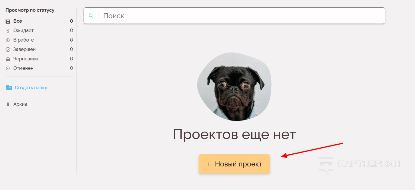В личном кабинете пользователю необходимо выбрать раздел «Заказчик» и «Мои проекты». На новой странице нужно нажать кнопку «Новый проект».