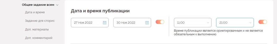 После оплаты нужно вернуться в личный кабинет и нажать «Настроить проект». В новом разделе пользователю нужно настроить задание для исполнителя. Здесь необходимо выбрать дату и время публикации (время публикации является ориентировочным).
