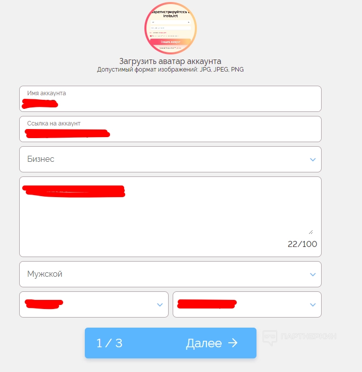 Блогеру необходимо заполнить персональную информацию. Необходимо сделать следующее:
