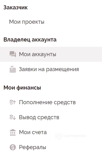 Затем — перейти в личный кабинет (вкладка «Владелец аккаунта» — «Мои аккаунты»).