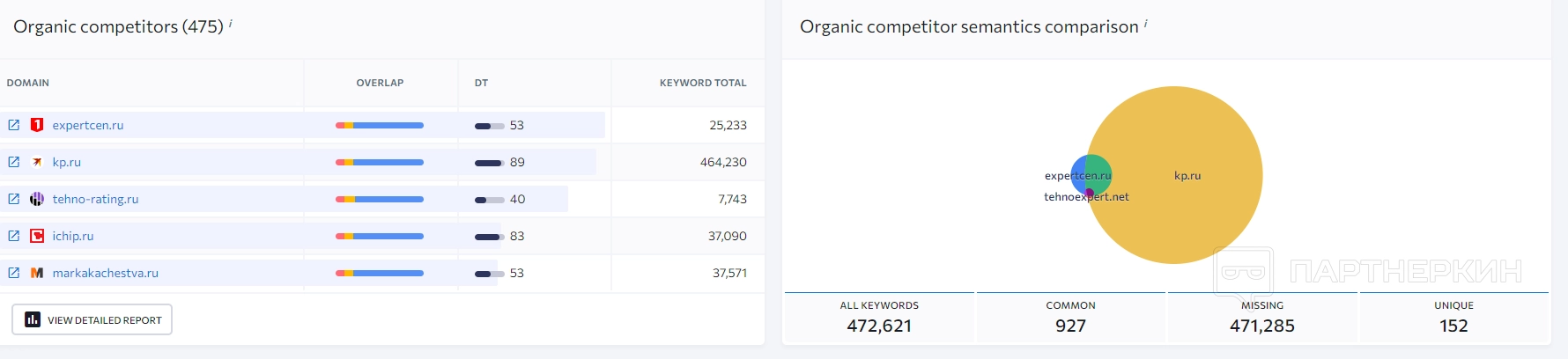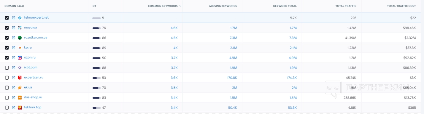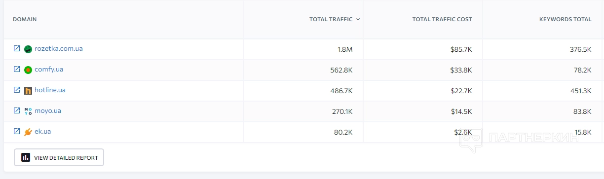3. Мои конкуренты . В этом разделе пользователь может сравнивать показатели своего сайта с показателями веб-ресурсов конкурентов.
