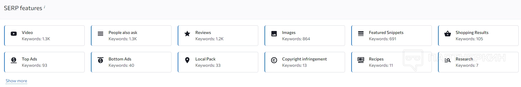 Последний раздел «SERP-анализ». С его помощью анализируется топ поисковой выдачи и определяются возможности для улучшения поисковой оптимизации.