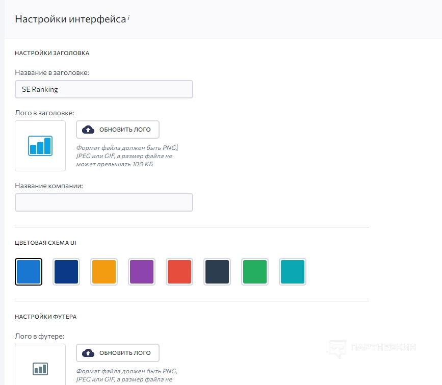 - white label — регулируются цветовые настройки интерфейса;