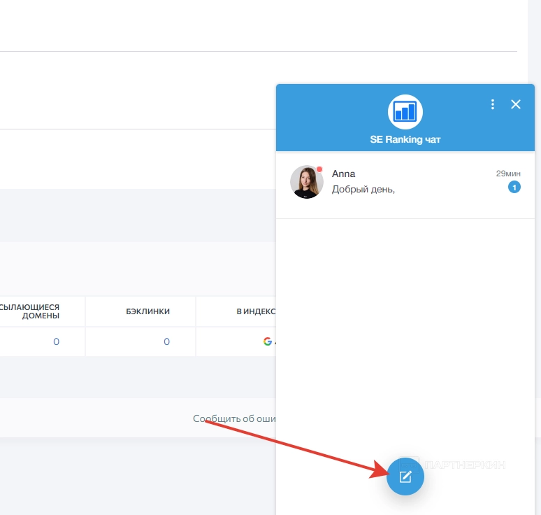 Если нужно обратиться в службу поддержки, достаточно спуститься в нижний правый угол и кликнуть на синий значок.