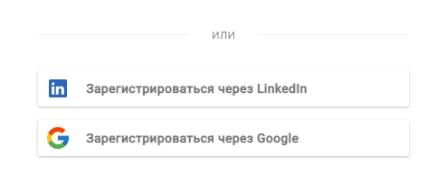 Если же пользователь не хочет вводить данные, можно воспользоваться авторизацией через аккаунты Linkedin или Google.