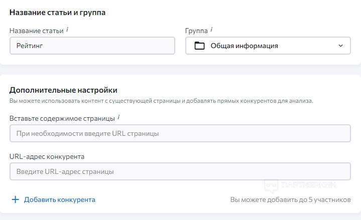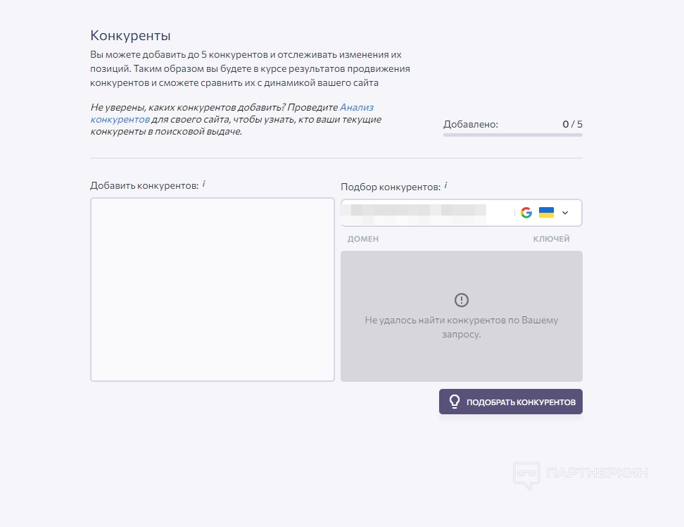 4. Конкуренты . На этом этапе пользователь должен добавить ссылки на сайты конкурентов.