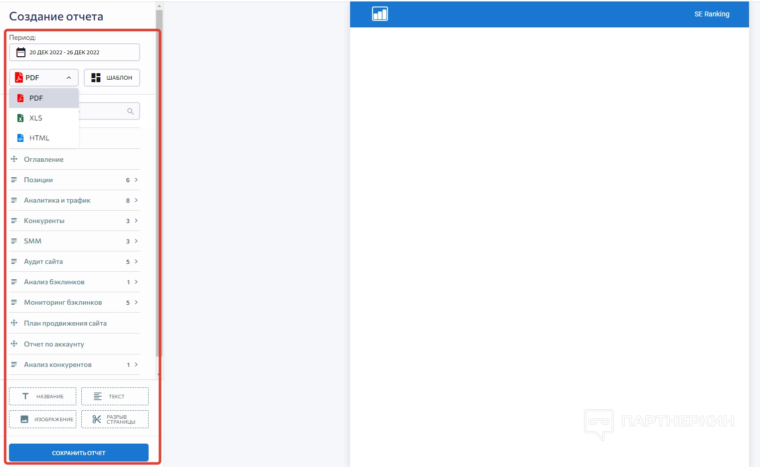 При этом стоит обратить внимание на функциональный редактор, с помощью которого в отчетах можно редактировать и создать разные разделы, а также добавлять изображения и прочий медиаконтент. Сохранение отчетов осуществляется в форматах PDF, XLS и HTML.