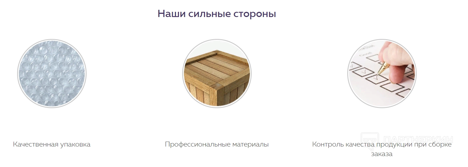 Сайт обладает только основной информацией по рабочим моментам: какие есть преимущества для сотрудничества, как происходит процесс работы с товаром, где именно находится склад, и для чего он предназначен. Без дизайнерских изысков, но и без назойливых рекламных интеграций.