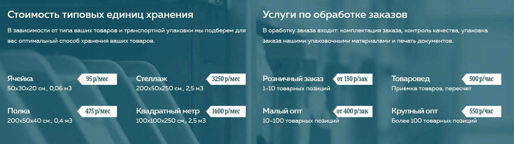 Что касается ценового вопроса, стоимость сопровождения и хранения товаров чуть выше рынка, однако полный прайс-лист становится доступен в момент оформления договора и обсуждения условий сотрудничества (чем крупнее опт, тем меньше затраты по себестоимости).