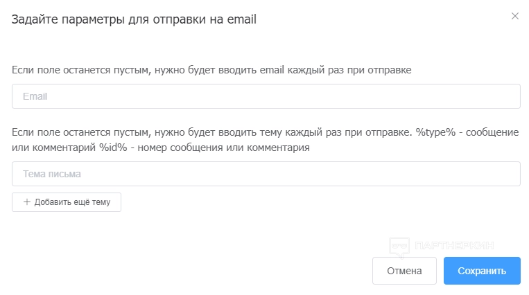 Во вкладке «Параметры для отправки на email» необходимо указать электронную почту, тему письма и нажать «Сохранить».