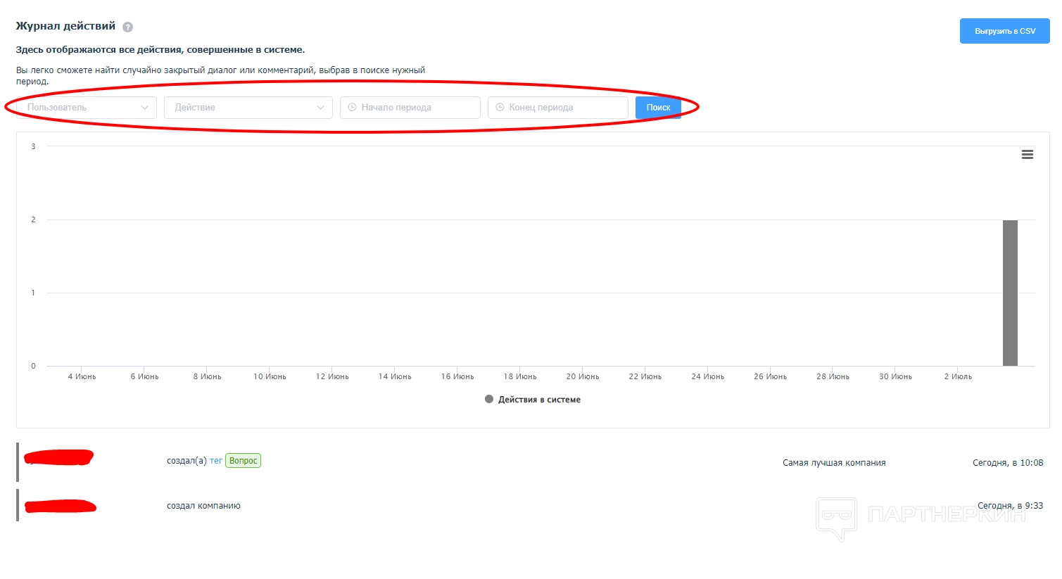 В журнале действий пользователь может найти случайно закрытый диалог или комментарий, выбрав в списке нужный период. Для этого необходимо сделать следующее: