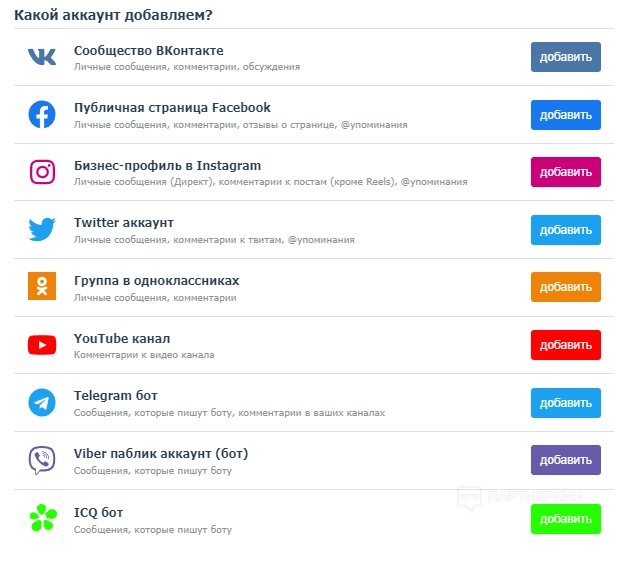 Рассмотрим добавление аккаунта на примере ВКонтакте.