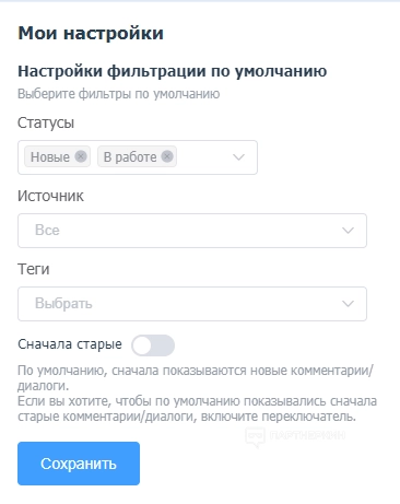 - сначала старые (по умолчанию сначала показываются новые комментарии/диалоги. Есть пользователь хочет, чтобы сначала показывались старые комментарии/диалоги, необходимо включить функцию).