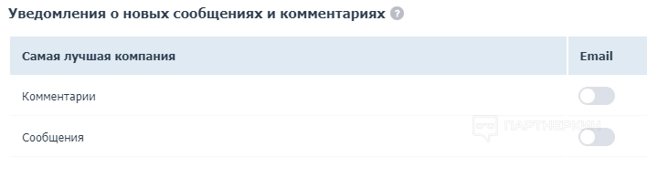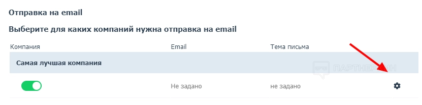 На этой странице можно выбрать, для каких компаний нужна отправка на email.