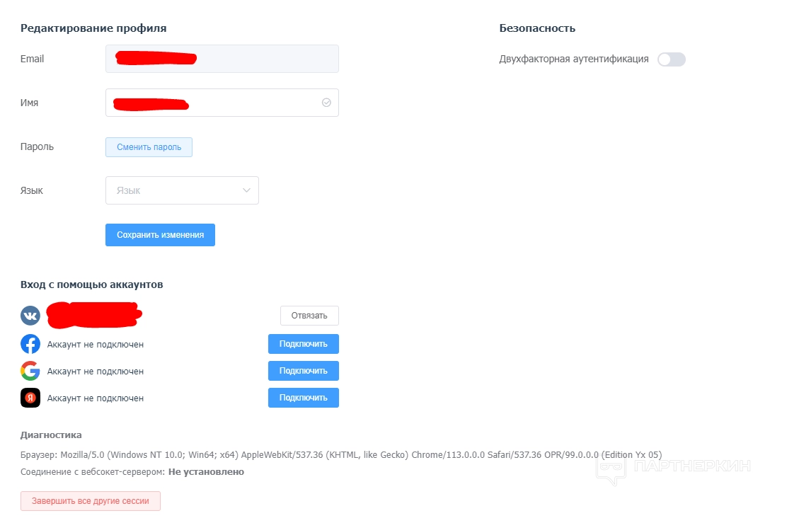 - привязать аккаунты ВКонтакте, Facebook, Google, Яндекс.