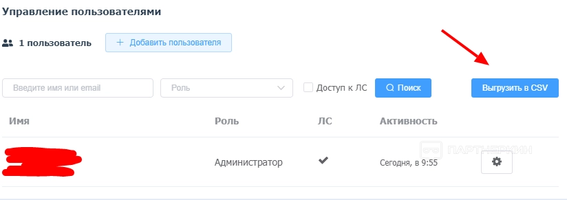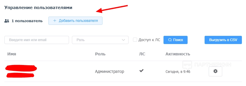 Здесь отображается имя, роль, доступ к личным сообщениям и активность. Есть возможность добавить нового пользователя. Для этого необходимо нажать кнопку: