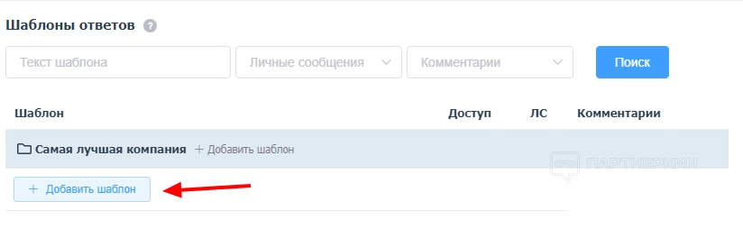 Если пользователь часто отправляет одинаковые ответы, для экономия времени рекомендуется использовать шаблоны. Чтобы создать шаблон, нужно нажать соответствующую кнопку: