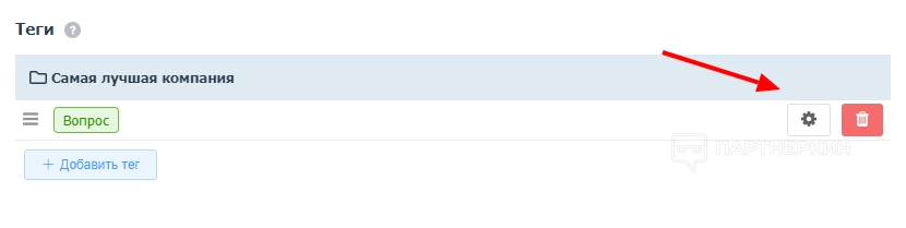 Добавленный тег можно удалить или редактировать (для этого нужно нажать значок «шестеренка»).
