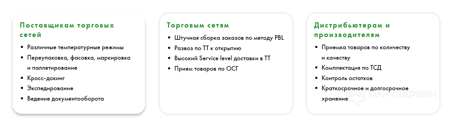 - Возможность проведения кросс-докинга — то есть отгрузка товара в магазин и дополнительная информация получателю без размещения товара на складе (и оплаты места для хранения).