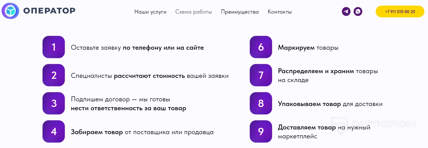 Оператор — это сервис по организации фулфилмента в Санкт-Петербурге. Он помогает пользователям получить полный спектр услуг при работе с маркетплейсами и сэкономить время на задачах, таких как приемка товаров, их доставка, упаковка и отгрузка. При этом клиенты платформы могут оформлять услуги по доставке в системе FBS/FBO. Рассмотрим подробнее возможности сервиса.