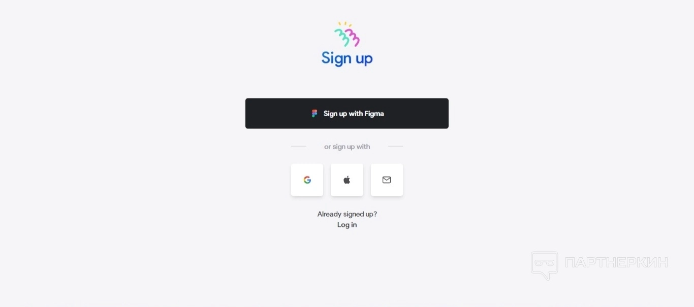 Затем сервис предложит авторизироваться с помощью аккаунта Figma, Google или Apple, а также ручного ввода данных.
