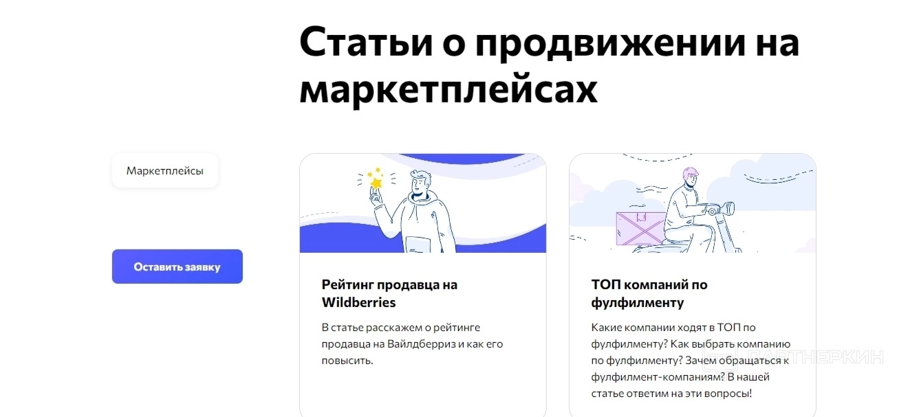 Для тех, кто не планирует нанимать специалистов от платформы по продвижению, на сайте существует специальный раздел, посвященный маркетплейсам и тому, как поднять свой рейтинг продавца.