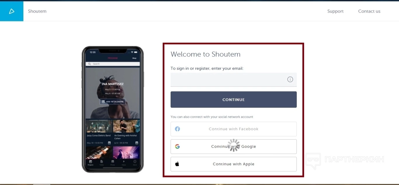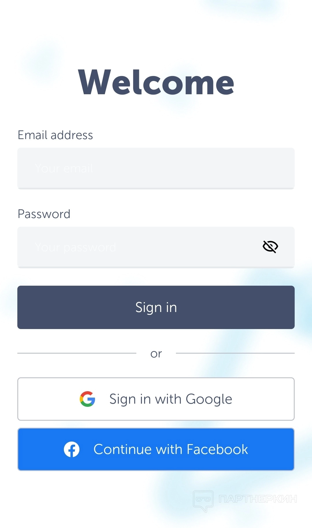 - авторизация с помощью готового профиля в Facebook*, Google или Apple.
