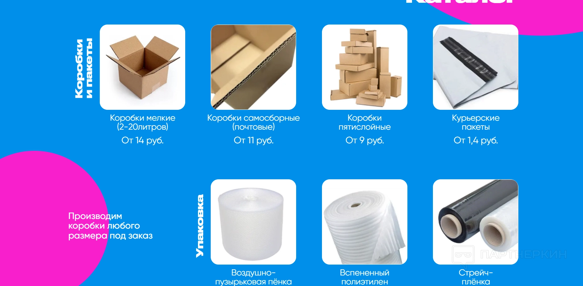 - Коробки и пакеты. Разные формы и размеры (2-20 литров, почтовые, пятислойные, курьерские пакеты).