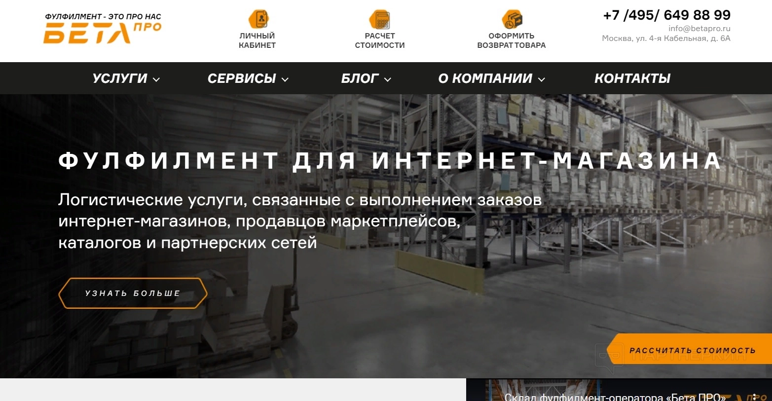 - Прием и хранение. Betapro может организовать маркировку «Честный знак», выбраковку, адресное хранение.