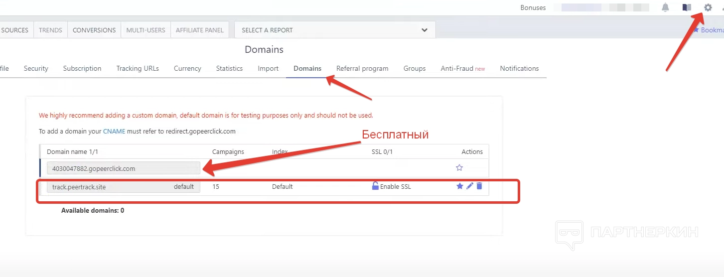 - Партнерки . Блок с партнерскими программами. Здесь создаются и настраиваются партнерские офферы. Еще отслеживаются конверсии и доходы от партнерок.
