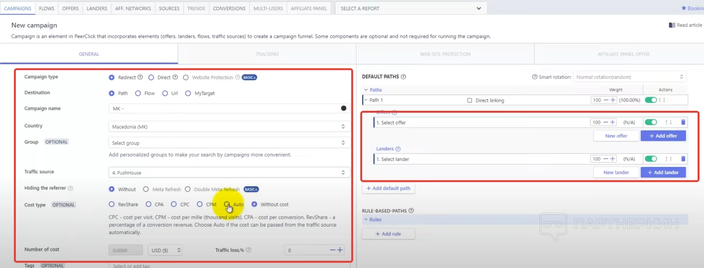 PeerClick обладает рядом дополнительных функций, включая возможность использования собственных лэндингов и трекинговых доменов, управления дополнительными офферами и кампаниями, а также интеграцию с другими сервисами и платформами.