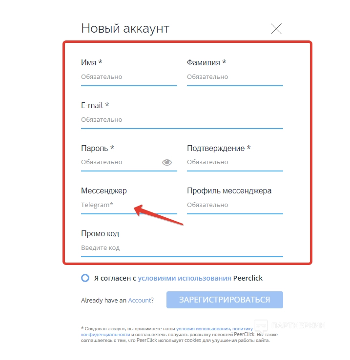 В конце даем согласие с условиями использования и жмем на кнопку регистрации.