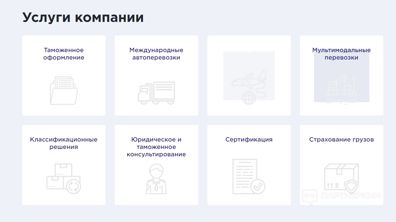 - Страхование грузов . Компания предлагает страхование грузов, что обеспечивает защиту от возможных рисков и убытков при транспортировке грузов.
