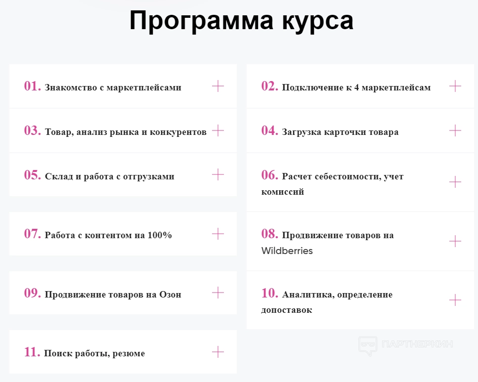 Сервис WB-Expert предлагает пройти онлайн-курс «Менеджер по работе с маркетплейсами». Обучающий материал подойдет менеджерам, которую ищут востребованную профессию, и предпринимателям, желающих продавать на маркетплейсах. Программа курса выглядит так: