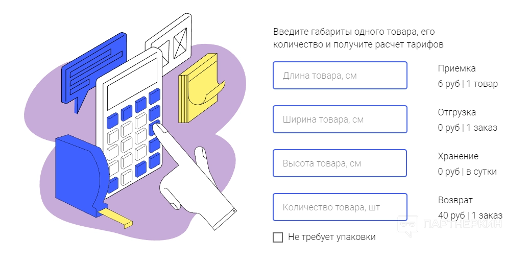 Чтобы узнать стоимость фулфилмента Yunu, необходимо указать следующие параметры: