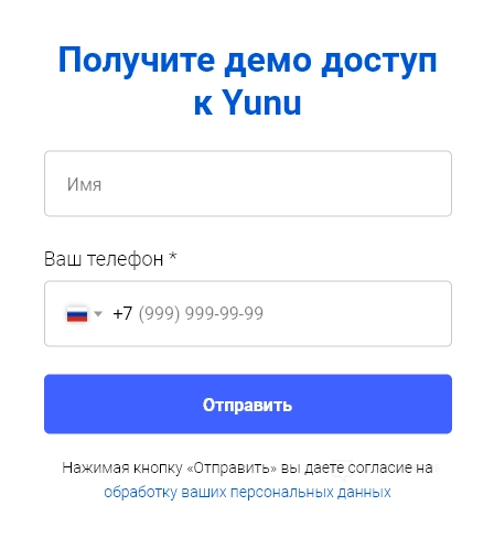 Если пользователь не уверен, хочет он сотрудничать с Yunu или нет, можно получить демо-доступ к площадке и проанализировать возможности сервиса. Для этого нужно заполнить форму: