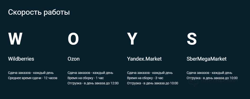 - Приемка товара (40 рублей за 1 заказ). Распознавание, визуальный осмотр и раскладка товара. Входит в услуги фулфилмента для Ozon и Яндекс.Маркета.