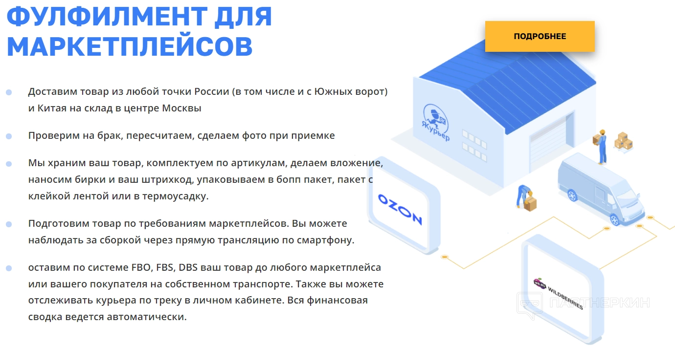 Якурьер — сервис, предлагающий услуги доставки и комплексного фулфилмента для торговых сетей и маркетплейсов. Основное назначение проекта все же заключается в проведении логистических связей между отправителем и получателем, а вот складирование и маркировка появились позднее, на волне интереса аудитории к этому направлению.