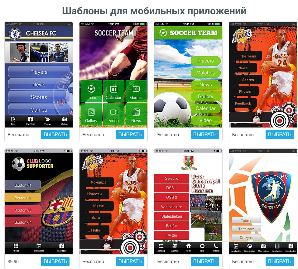 Перейдем в категорию «Спортивная команда» и посмотрим на готовые шаблоны.