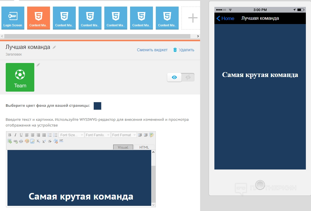 Team. Здесь нужно придумать заголовок, выбрать цвет фона для страницы и ввести текст. Готовый вариант может иметь следующий вид: