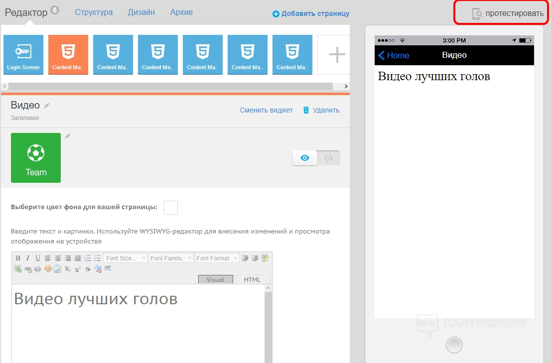 После завершения работы в разделах «Редактор» и «Дизайн» необходимо нажать кнопку «Протестировать», расположенную в правом углу.