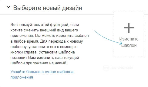Если пользователь хочет изменить внешний вид приложения, необходимо воспользоваться функцией «Изменить шаблон».