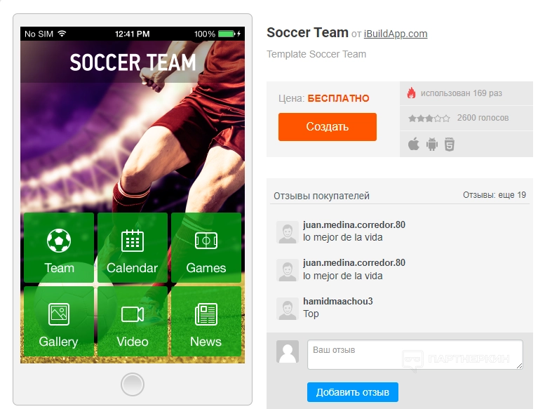 Создание приложений для других категорий происходит аналогично. Пользователь выбирает шаблоны, редактирует макет, меняет дизайн, заполняет необходимые поля и тестирует программу на Android или iOS.