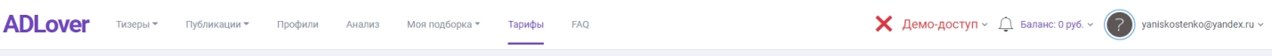 - Тарифы . Расписана стоимость услуг, распространяется на инструменты для анализа аккаунтов.