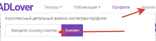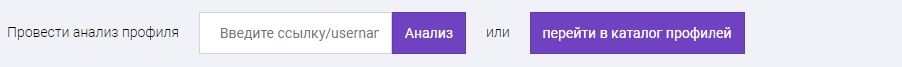 В верхней части экрана есть специальная строка, куда вставляется URL-адрес профиля, который нужно проанализировать. Рядом находится кнопка для перехода в каталог профилей.