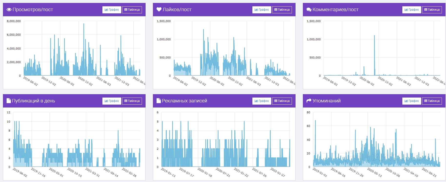 - показатель вовлеченности от 50 000 до 7 000 000;
