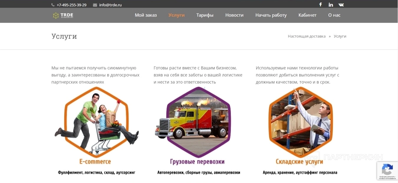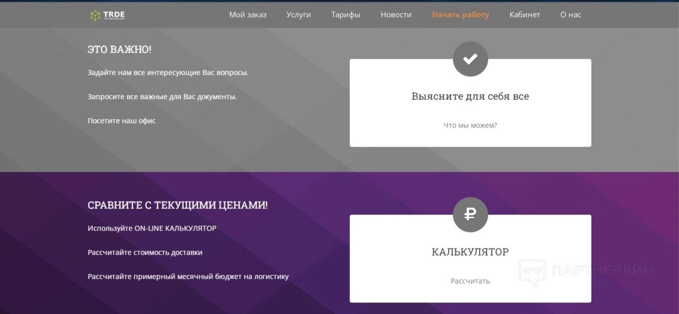 - Грузовые перевозки. За счет своего многолетнего опыта и существования, Trde предлагает множество вариантов грузовых перевозок для своих клиентов. К самым популярным видам относятся сборные перевозки, автоперевозки по Москве и России, железнодорожные и авиаперевозки. Помимо этого, компания предлагает разные варианты консалтинговых услуг.