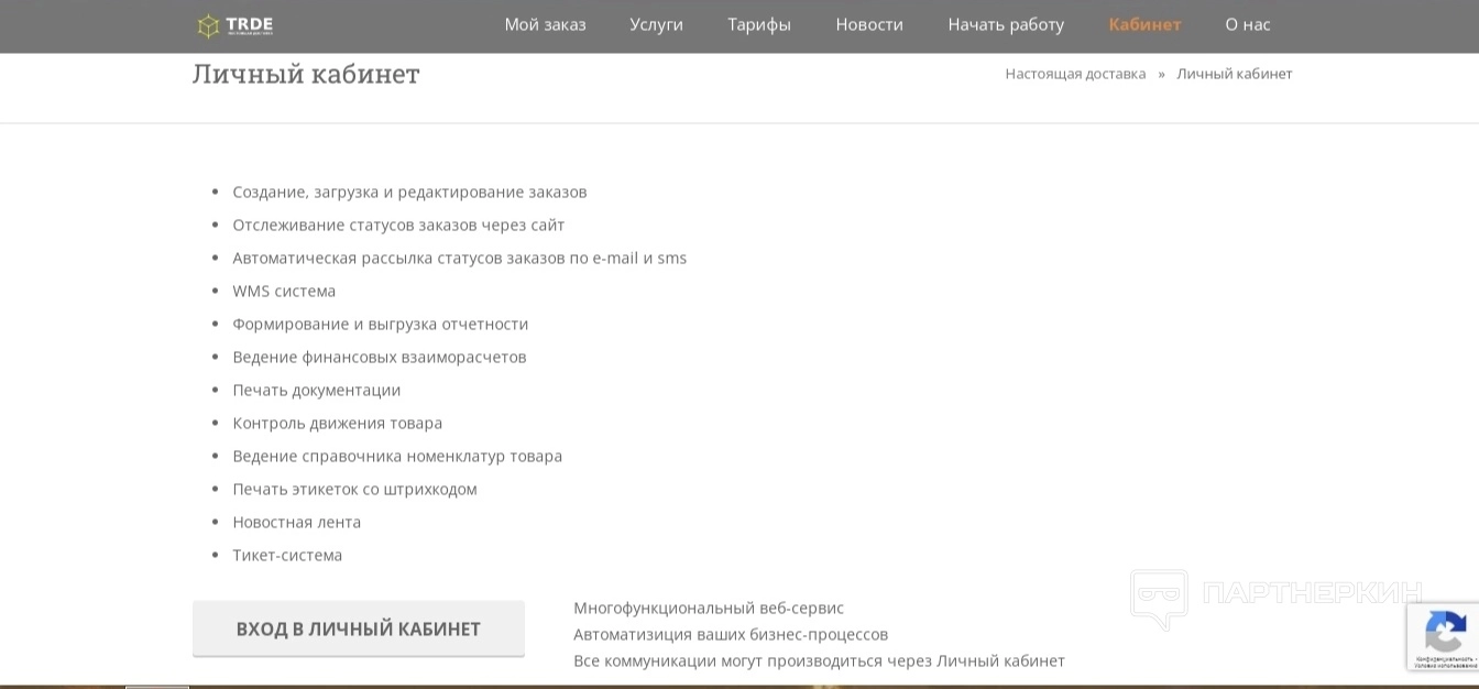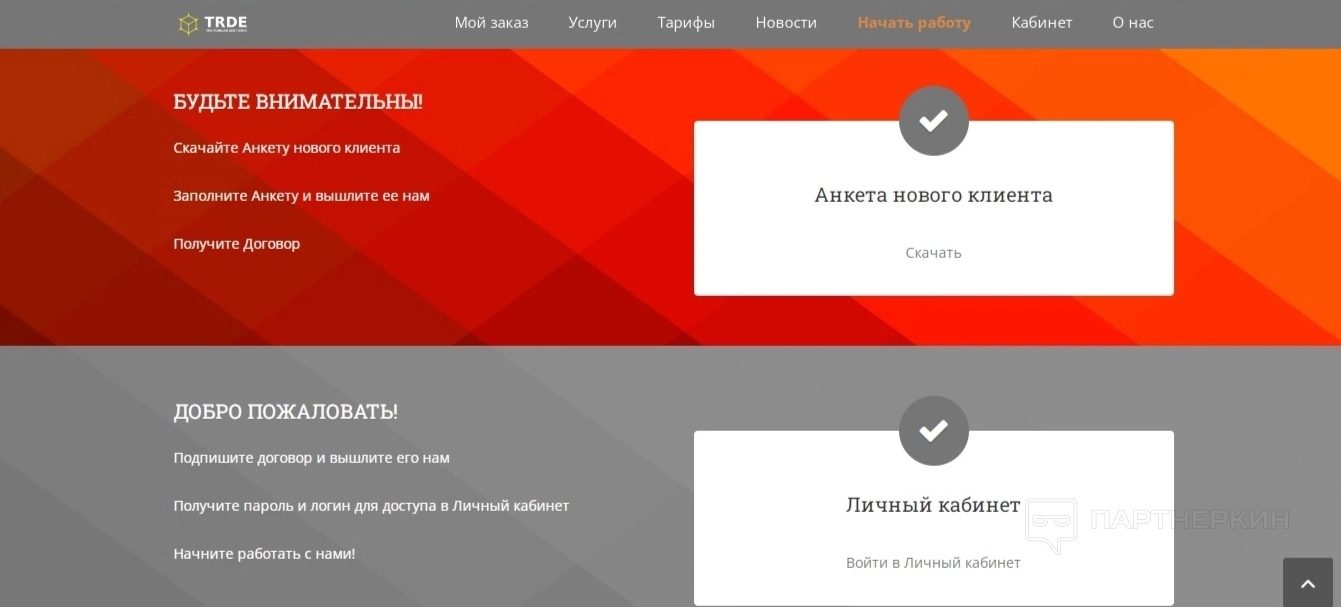 Trde — это многофункциональный сервис, предоставляющий услуги грузоперевозок, фулфилмента, а также логистики, хранения и аренды, аутсорсинга и многое другое. Компания заинтересована в долгосрочном сотрудничестве, поэтому в приоритете рассматривает организации e-commerce, онлайн-магазины и другие уровни бизнеса. Trde существует с 2014 года, а головной офис компании находится в городе Москва.